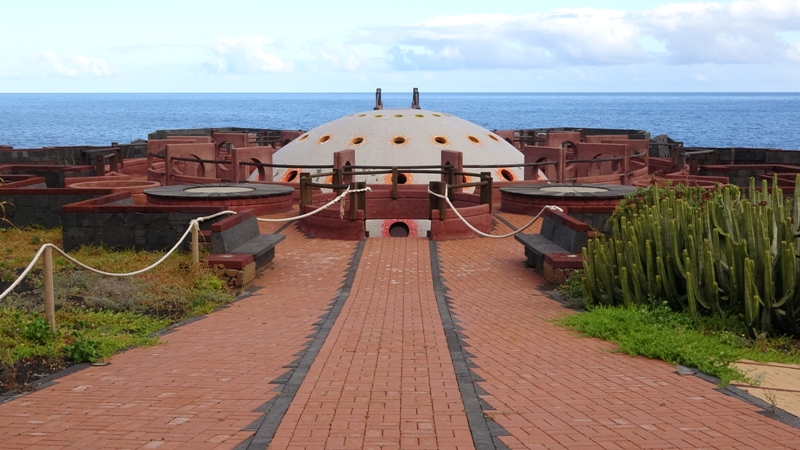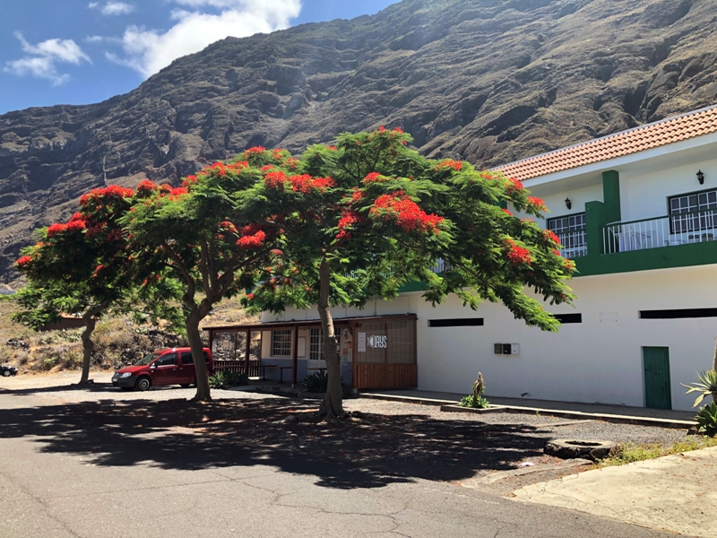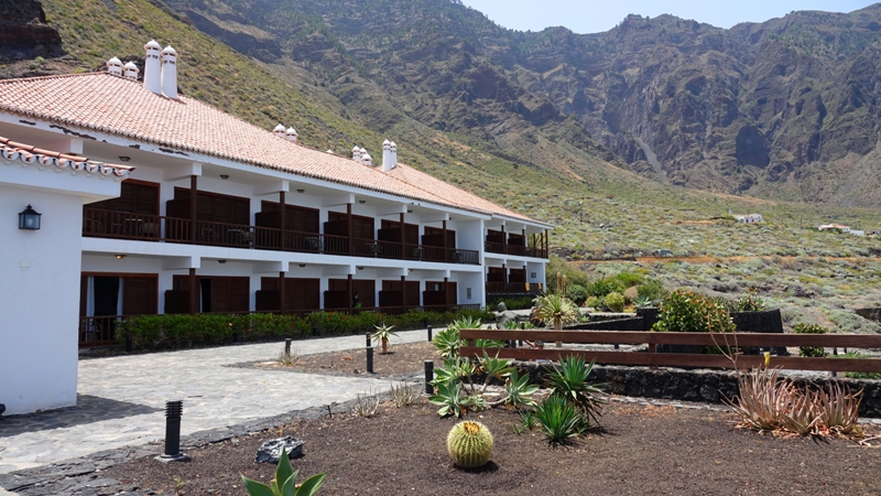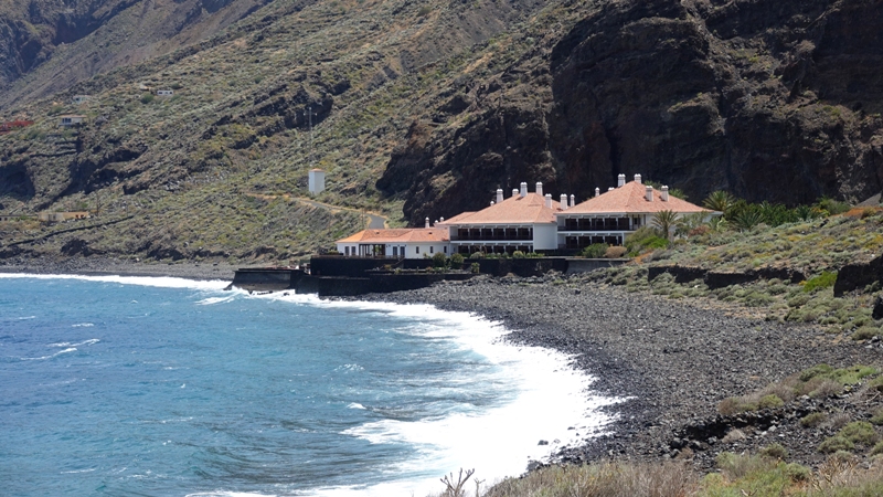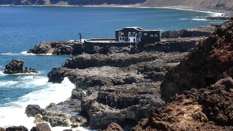 Iniciamos las visitas por el pueblo pesquero de Las Puntas, situado justo a la salida del largo túnel de Los Roquillos en el extremo nordeste del Valle del Golfo, donde nos encontramos con el hotel más pequeño de mundo, llamado Hotel Restaurante Puntagrande construido en el año 1884, entramos en su terraza mirador pero en aquellos momentos daba la sensación que estaban preparándolo para reabrir tras las restricciones de la pandemia de covid-19.