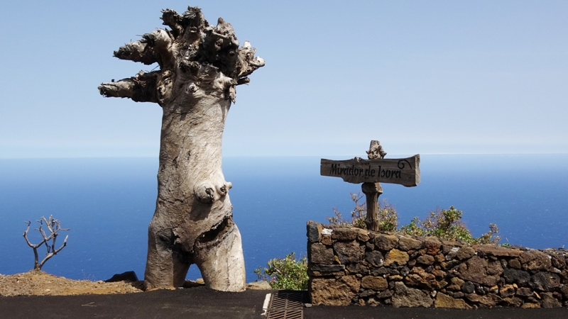 En la isla nos encontramos con espectaculares coladas de lava junto con sus volcanes, por otro lado hemos hecho rutas por frondosos bosques de laurisilva y pinos, además de ver sus emblemáticas sabinas que se arrodillan ante el fuerte viento, nos hemos bañado en encantadoras piscinas naturales de agua cristalina, bueno mejor dicho me he bañado, porque mi pareja encontraba demasiado fría el agua y hemos disfrutado de unas panorámicas de vértigo desde sus múltiples miradores, sobre todo desde nuestro mirador favorito, el Mirador de la Peña.