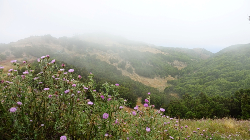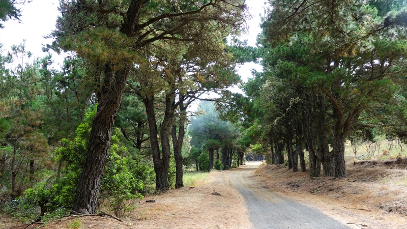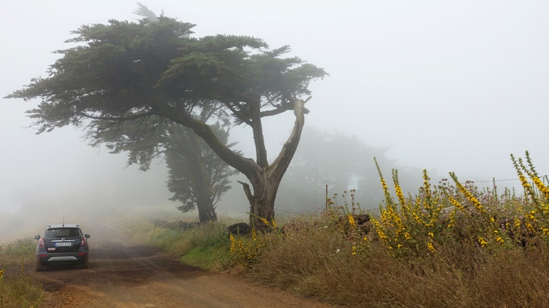 Viniendo de el Monacal, pasados unos 10 kilómetros cogimos el desvío a la izquierda siguiendo las indicaciones del navegador, donde la carretera se convierte en una pista forestal, en aquel momento empezó a descender la bruma que fue cubriendo la copa de los arboles, dando un toque más misterioso al lugar.