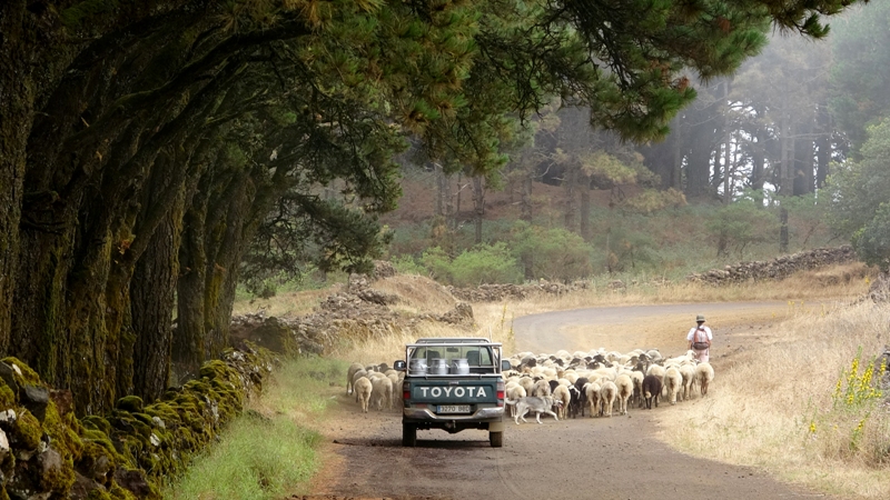 De regreso a la carretera fuimos acompañados por un rebaño de ovejas a las que el pastor iba dirigiendo ayudado por su fiel perro, eso si, él iba en una pickup Toyota, nada de ir andando.