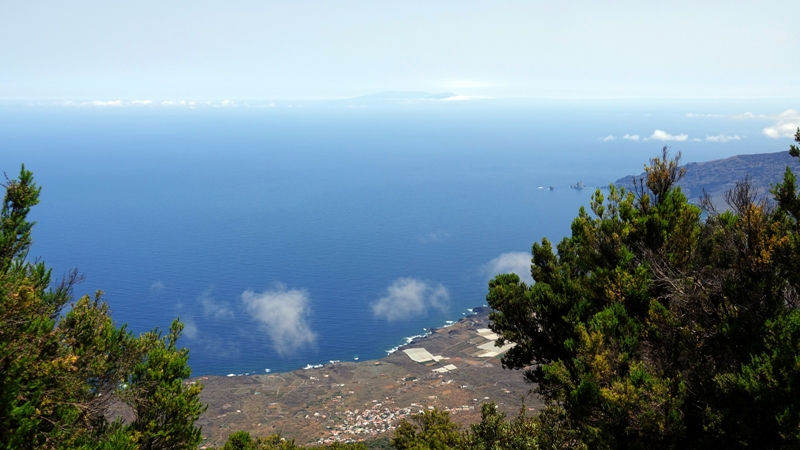 En poco más de media hora llegamos a El Pinar, haciendo una parada en el mirador de Tanajara, situado en la población de el Taibique, desde este promontorio se puede ver una amplia panorámica del Mar de Las Calmas, con los volcanes de La Restinga al fondo.
