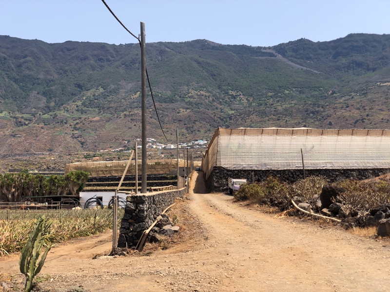 Justo antes de descender hacia la playa nos encontramos un desvío a la izquierda que llevaba a la plantación de plátanos que sale en la serie, es una curiosa plantación en mitad del mar de lava.