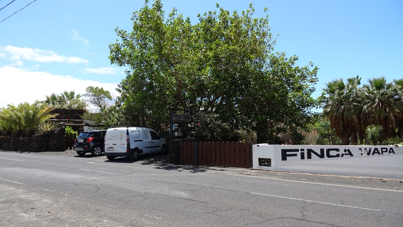 Una vez puestos en contacto con el propietario por teléfono, nos envió vía whatsapp la ubicación correcta. Por fin llegamos a la Finca Wapa, situada en un pequeño oasis de palmeras, con unos apartamentos encantadores encalados de color blanco y con la ventaja de tener el aparcamiento en el mismo patio.