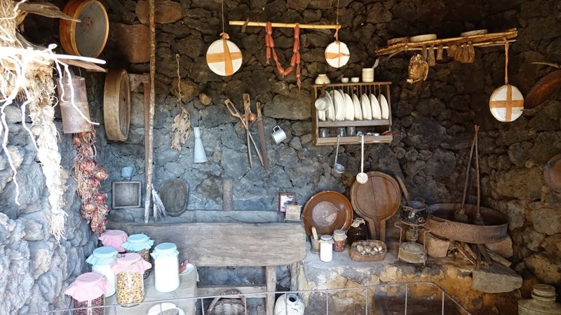 Por otro lado en el Poblado de Guinea, comprobamos la evolución de las casas en el Hierro, pasando por los diferentes periodos históricos de la isla, estilo de vida, costumbres, utensilios, muebles, en el recorrido entramos en varias de las casas que están con todo el equipamiento original, las ultimas casas del poblado nos explicaron que fueron abandonadas a mediados del siglo XX.