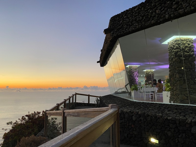 El día llegaba a su fin y que mejor lugar para contemplar la puesta de sol que desde el Mirador de la Peña, inaugurado en el año 1989, bajo el diseño de Cesar Manrique. Un lugar idílico a 650 m de altura, con unas vistas espectaculares de la gran depresión de el Golfo, la Frontera, los roques de Salmor y toda su costa.