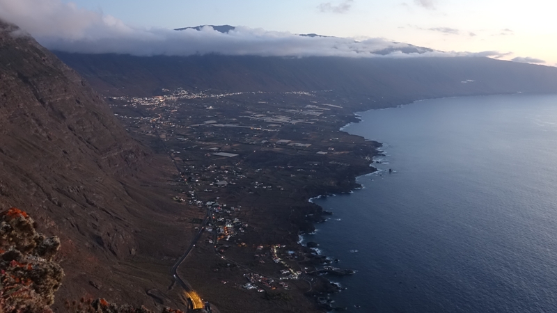 Teníamos por delante un día bastante intenso, por lo que nos levantamos relativamente temprano. Tras desayunar en el apartamento nos dirigimos hacia nuestro primer destino de la mañana, La Llanía, para ello subimos por la revirada carretera que va ascendiendo la ladera montañosa, en dirección a Valverde, encontrándonos por el camino algunos miradores donde contemplar las vistas al Golfo.