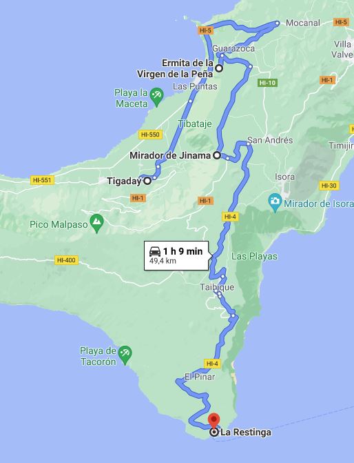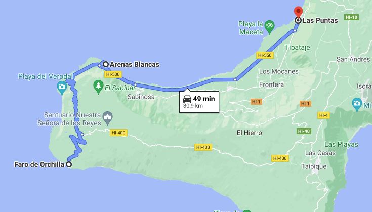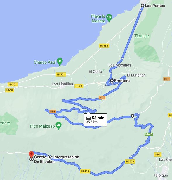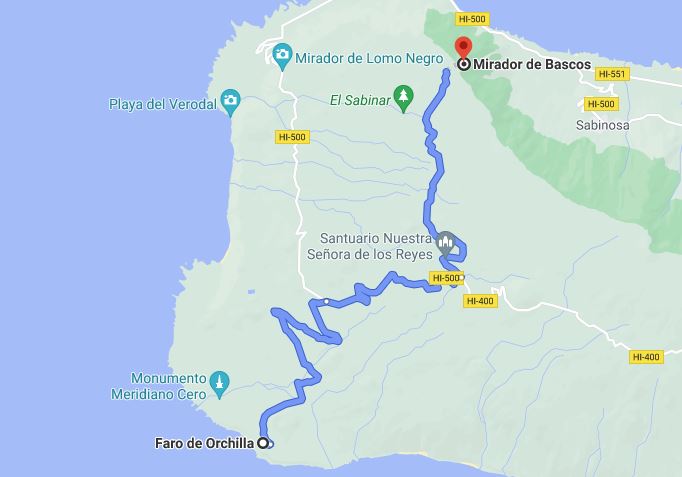 Aquí os dejo un mapa de El Hierro con las mejores atracciones turísticas y los lugares de interés recomendados de la isla.