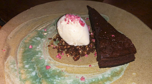 El otro fue un pastel llamado Akaneya yatsuhashi , combina un cremoso tibio de chocolate con una bola de helado.