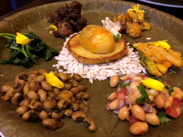 Samaya Baji, es un plato festivo de Nepal, que viene con un combinado de elaboraciones. Servido en plato de hoja de árbol saal.