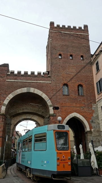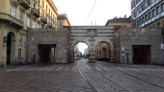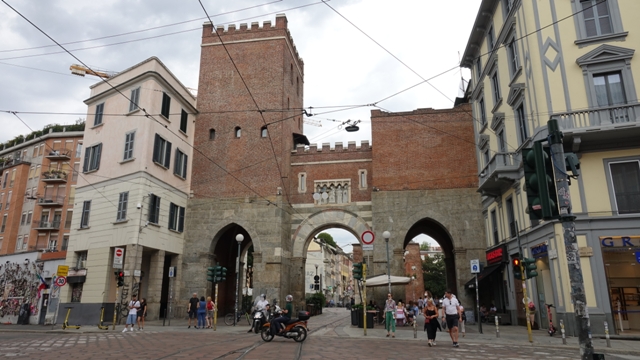 De regreso hacia el centro ciudad, pasamos por el Arco de la Porta di Ticinese, situada frente a la Darsena del Naviglio , el arco está construido en granito rosa, para conmemorar la victoria de Napoleón en la batalla de Marengo.