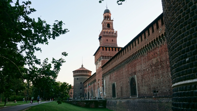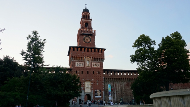 Lo que nos quedaba de tarde lo aprovechamos para visitar los alrededores de la plaza del Duomo, que como le estaba dando el sol del atardecer tenia la fachada de color amarillo anaranjado, la Galería Vittorio Emanuele II, el Teatro de La Scala y acabando con un paseo por los jardines del Castillo Sforzesco.