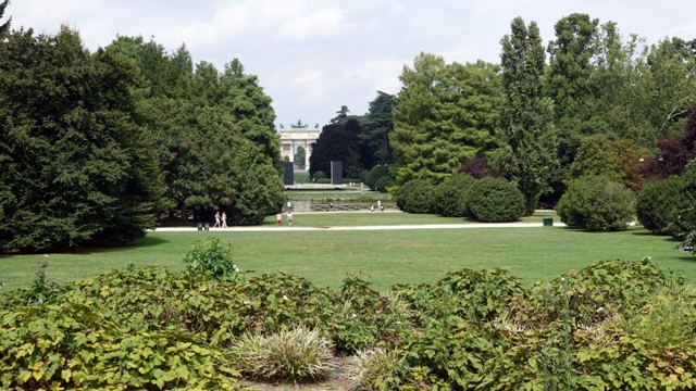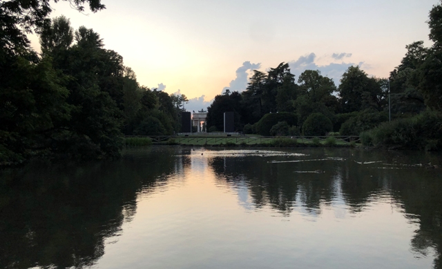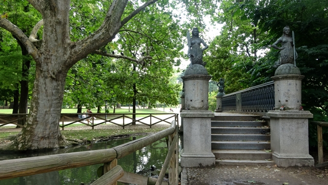 Al salir del castillo entramos en el Parque Sempione, el más grande de la ciudad, con nada menos que 386.000 metros cuadrados de superfície, fue construido en el 1890 sobre una antigua plaza de uso militar. Hicimos un agradable paseo entre sus arboles, hasta llegar al Ponte delle Sirenette que nos llevó al camino que bordea el lago.