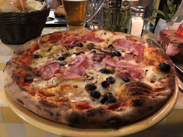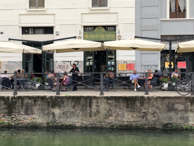 Aprovechamos la gran oferta de restaurantes de la zona para almorzar en el restaurante llamado «Al Pont de Ferr» que está en funcionamiento desde el 14 de diciembre de 1986 y regentado por la somelier Maida Mercuri, donde comimos excelentemente, recomendándolo a cualquiera que viaje a Milán y coincida con la hora del almuerzo en el barrio de Navigli.