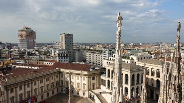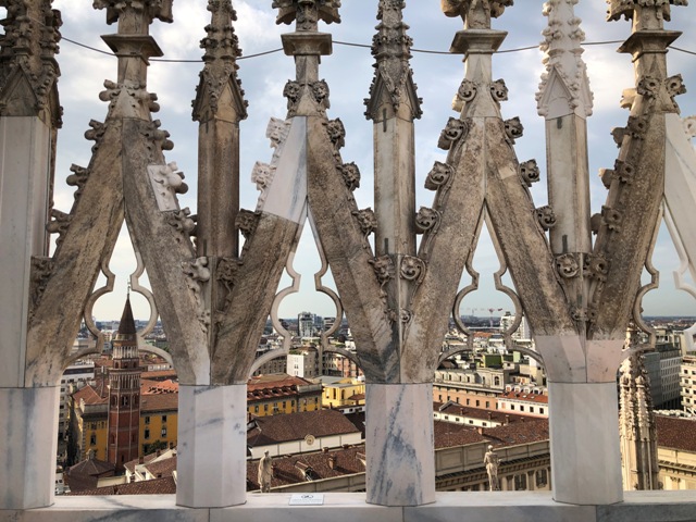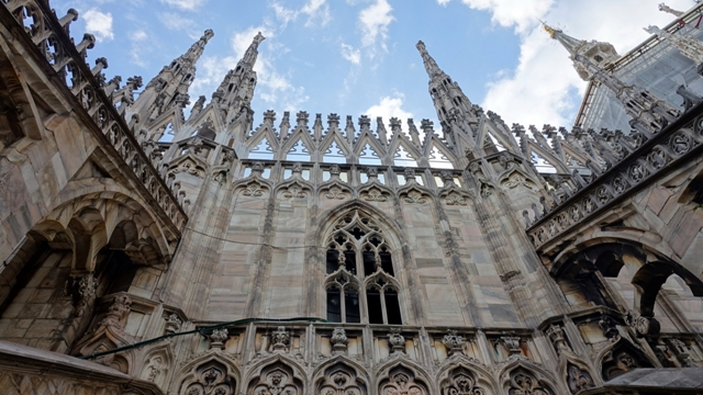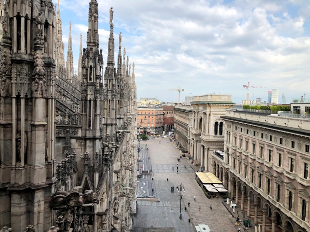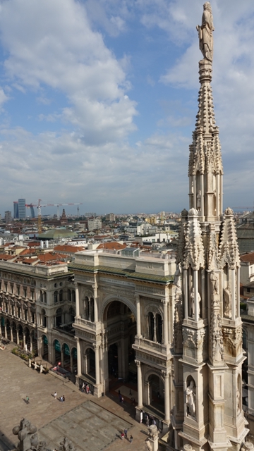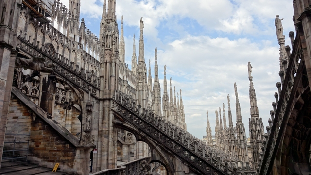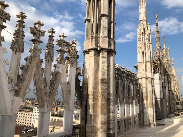 Pensamos que lo mejor era empezar por visitar el tejado de la Catedral o Duomo para evitar aglomeraciones turísticas posteriores, como era bastante temprano tuvimos que esperar a que abrieran las oficinas para comprar la entrada. Para acceder al tejado-terraza se puede efectuar en ascensor o por las escaleras, el precio es 20€ o 15€ respectivamente, aquí os dejo la web oficial donde podéis comprar la entrada con antelación: https://ticket.duomomilano.it/en/ .
