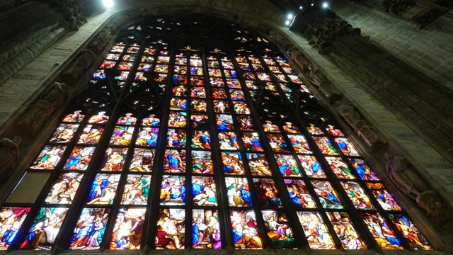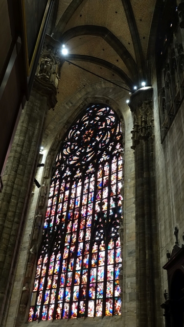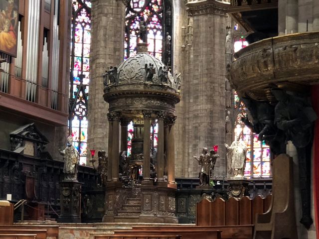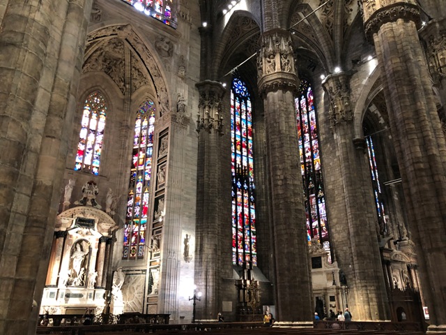 A continuación visitamos el interior de la catedral con sus estilizadas columnas de mármol, donde pudimos ver los sarcófagos del siglo XIV de Marco Carelli y de los arzobispos Ottone y Giovanni Visconti, la impresionante estatua de San Bartolomé obra de Marco da Agrate, que representó al apóstol sin piel, la verdad es que da bastante mal rollo, pero hay que reconocer que está realmente bien trabajada.