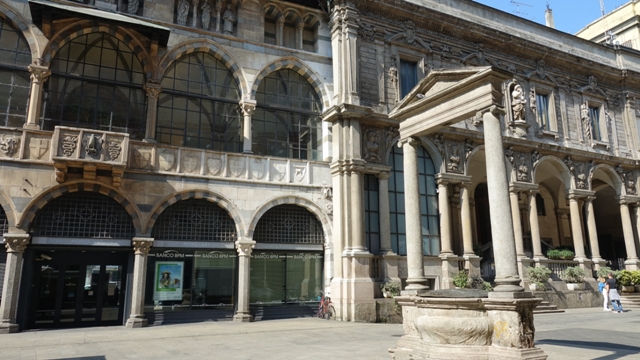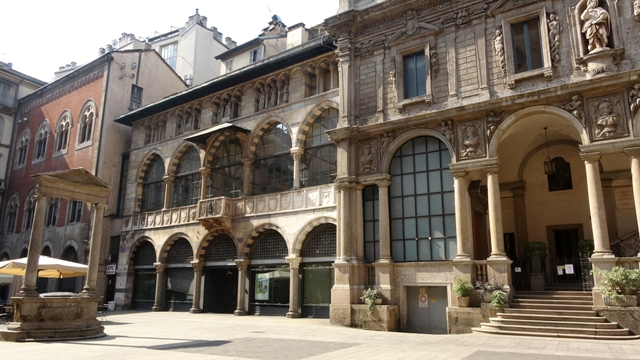 Situada a escasos metros de la catedral, esta plaza fue uno de los lugares de reunión donde los mercaderes ofrecían todos los productos y servicios de la región, conservando todavía en la actualidad su arquitectura medieval. Los lugares de interés alrededor de la plaza son : el Palazzo della Ragione, La Loggia degli Osii en la que estuvieron ubicados los juzgados, el Palazzo delle Acuole Palatine, que fue utilizado por la escuela superior, la Casa dei Panigarila, el Palazzo dei Giureconsulti sede actual de la cámara de comercio y el Pozo de Agua construido en el siglo XVI.