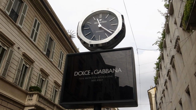 Subimos por la Via Montenapoleone siguiendo el rastro de los escaparates de las preciadas boutiques, viendo como algunos de sus clientes adinerados compraban prendas de vestir y bolsos a precio de oro, tal y como reza en el nombre del barrio.