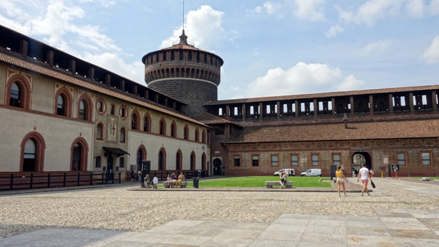 Llegamos al parque a media mañana, lo primero que hicimos, a parte de hacer varias fotografías y vídeo, fue visitar el Castillo Sforcesco, que es de acceso gratuito, entramos por la puerta principal cruzando el patio de armas y salimos por la puerta que da acceso al parque.