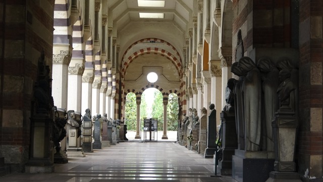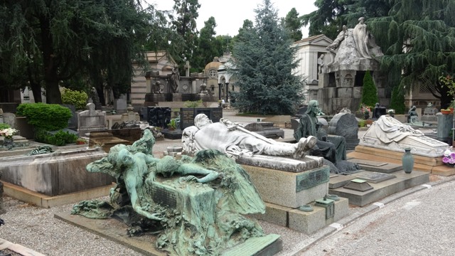 Al pasar bajo los arcos entramos de lleno en el espectacular cementerio como tal, con una infinidad de tumbas de personajes famosos, desde pilotos de formula uno, pasando por políticos, arquitectos, literatos, y un gran etcétera. Realmente parece más un museo al aire libre con impresionantes obras de arte escultórico.