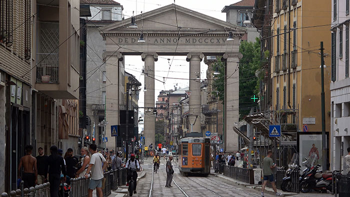 Entramos al casco histórico de la ciudad por la L’ antica Porta Ticinese Medievale, una de las tres puertas medievales de acceso a la ciudad, un poco más adelante nos encontramos con la Colonne di San Lorenzo, frente a la Basilica San Lorenzo Maggiore.