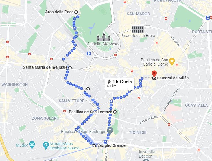 Giramos a la izquierda por la calle Largo Quinto Alpini hasta llegar a la Via Lorenzo Mascheroni, que nos llevaría hasta la Iglesia de Santa Maria delle Grazie.