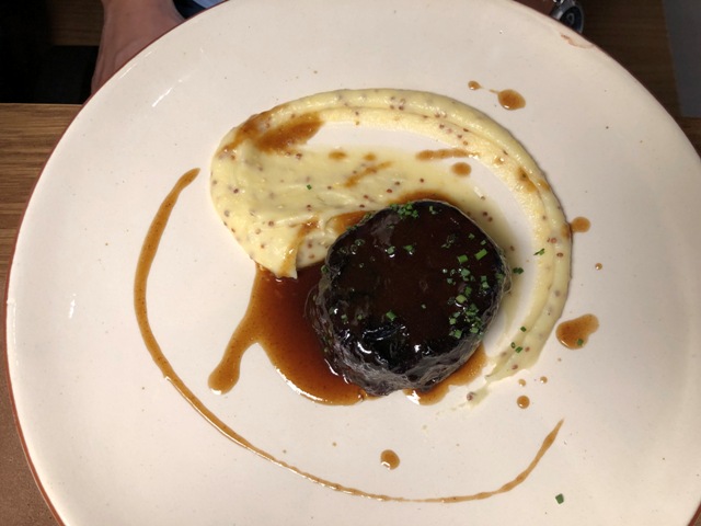 Rabo de ternera con tuétano y parmentier de patata a la mostaza 22€
