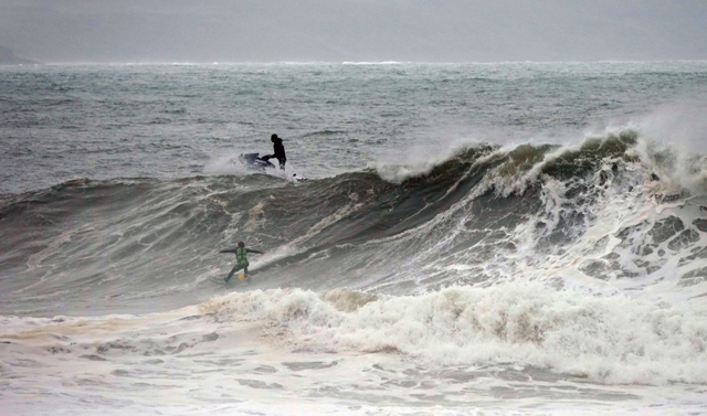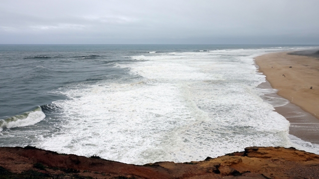 Con el coche, bajamos hacia la Praia do Norte para ver romper las olas desde más cerca, aparcamos fácilmente en el pinar, bajando a la amplia playa, nos recordó bastante a algunas playas de Fuerteventura, nos acercamos a la orilla para hacer una cuantas filmaciones y fotos del incesante oleaje y de los surfistas.