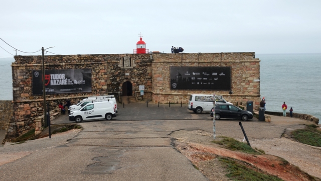 Fuimos caminando hacia el fuerte San Miguel, a unos 800 metros del Santuario, además no se podía acceder en coche pues en los días que visitamos el faro se celebraba una de las pruebas del mundial de surf, pero solamente acuden los días que se prevén las olas más altas, cuando estuvimos nosotros, no fue uno de esos días, solo había un par de surfistas con sus acompañantes en motos de agua entrenando sus piruetas sobre las olas, suficiente para que nosotros nos quedáramos boquiabiertos de su coraje al enfrentarse a esas paredes de agua y eso que se supone eran olas pequeñas las de ese día.