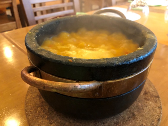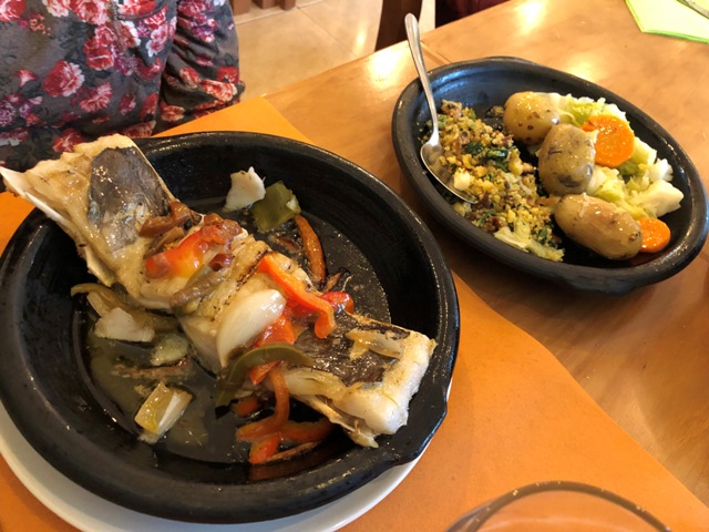 Recorrimos varias de sus callejuelas hasta llegar a la playa, como iba llegando la hora de comer, fuimos en busca de algún restaurante que encontráramos atractivo, elegimos el Canasta a Grelha, un buen restaurante en pleno centro, comimos una sopa de verduras, unas pataniscas y de segundos bacalao a la parrilla y unas feijoas con calamares, me trajeron un perolo que podíamos comer cuatro, que exagerados que son, me puse a reventar y todavía sobró. Un restaurante muy recomendable.