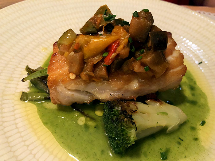 De segundos nos trajeron media ración de pescado blanco y media ración de unas deliciosas costillas de cerdo que se deshacían en la boca.