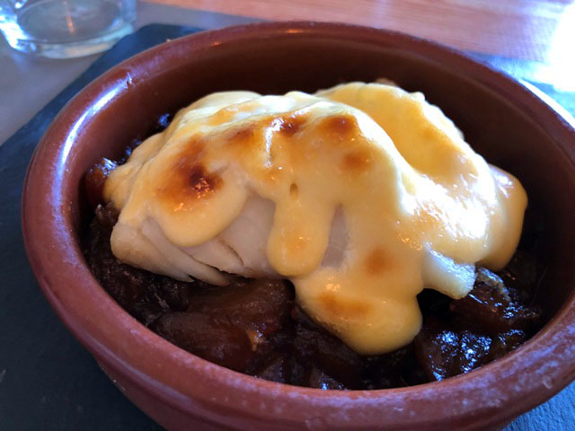 De platos principales un Bacalao con manzana, cebolla y alioli de miel y Paletilla de cordero cocinada a baja temperatura y