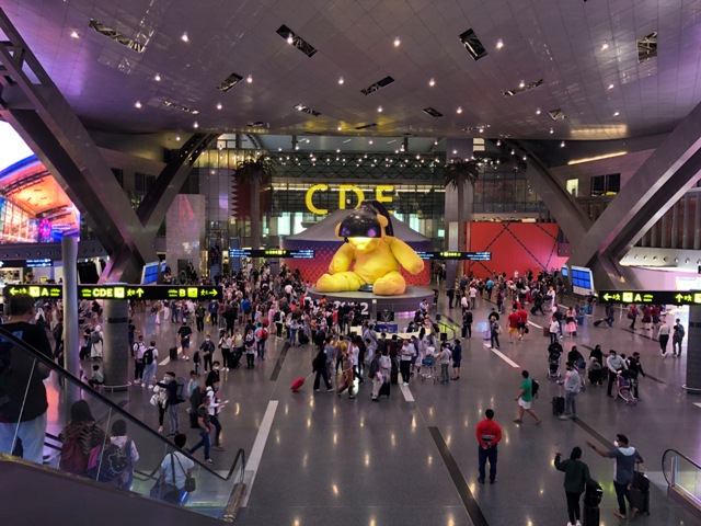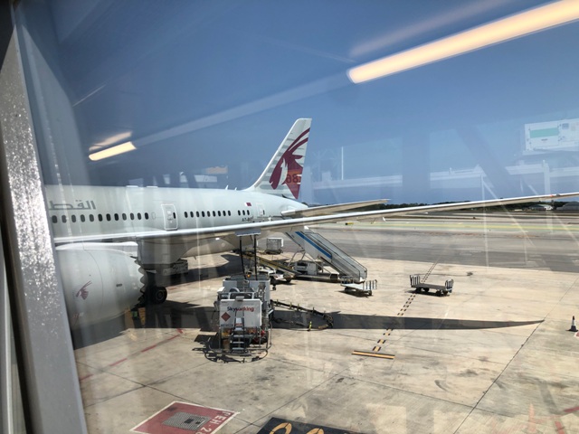 Despegamos de la terminal 1 del aeropuerto de Barcelona a las 15:50 con destino Doha, donde llegamos tras unas seis horas de vuelo a las once de la noche hora local. El avión era de la última hornada de Boeing 777, con unas pantallas multifunción de gran tamaño y las ventanillas sin cortinilla, pues se oscurecían electrónicamente, una auténtica virguería.