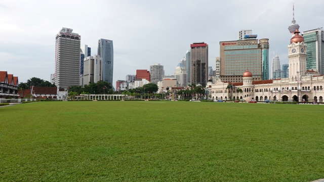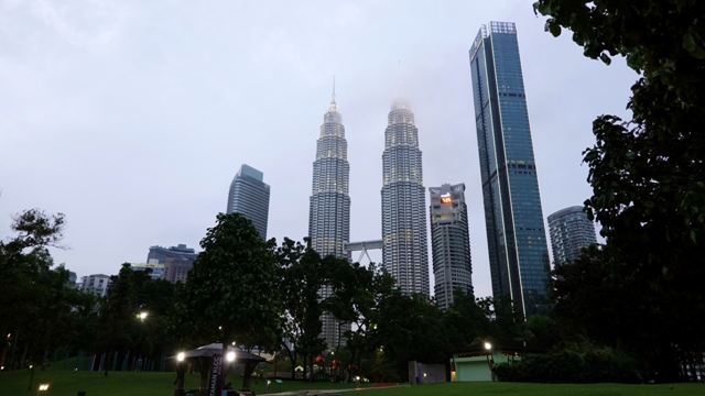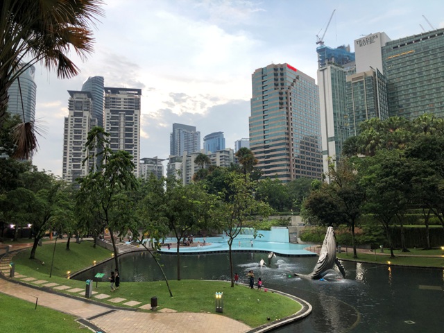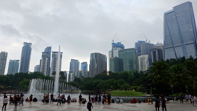 Llegamos al hotel Meliá Kuala Lumpur sobre las seis de la tarde, además por suerte paró de llover, el hotel está situado frente a una parada del tren elevado y a una media hora andando de las Twin Towers Petronas, el edificio ha sido reformado pero a pesar de ello se le notan un poco los años. Hicimos el chek in e inmediatamente nos pusimos en marcha, para nuestra primera toma de contacto en la ciudad decidimos ir al parque KLCC Park, frente a las Torres Petronas.