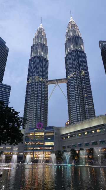 Como podéis imaginar, hicimos decenas de fotografías a las twin towers petronas , nos quedamos hasta que anocheció para verlas iluminadas y disfrutar de la vista frente a las coloridas fuentes, son unos edificios con un diseño fantástico que varía su tonalidad dependiendo de como les da el sol cambiando radicalmente de noche.