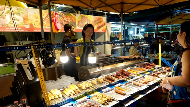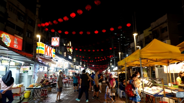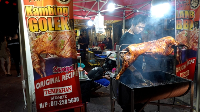 Regresamos al monorraíl para bajarnos en la siguiente parada llamada Bukit Bintang, una zona muy comercial con varios centros comerciales alrededor, o malls como lo suelen llamar por allí, donde se encuentra una de las más ambientadas calles de comida callejera la Jalan Alor, es muy recomendable ir al atardecer que es cuando empiezan a instalarse los tenderetes callejeros, cenamos un pinchos variados en uno los tenderetes, nos comimos 6 pinchos y con la bebida nos costó 41 Rm que son unos 10€.