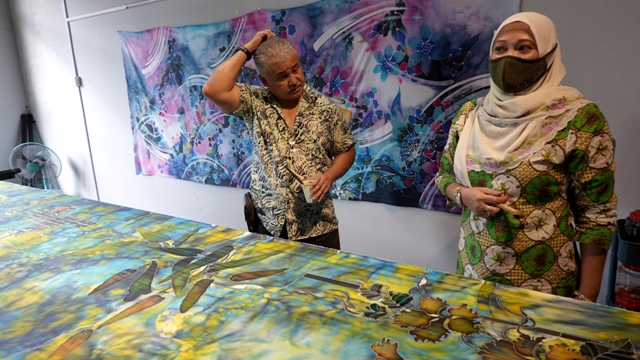 Las dos siguientes visitas fueron en las que los guías esperan recibir su comisión por alguna venta, una fábrica de Batik donde nos mostraron como estampan y pintan las tela de algodón para diseñar la ropa típica malaya, que es de colores vivos con sus dibujos de plantas exóticas o cenefas, todo hecho a mano, según nos contaron, en el gobierno promueven que los funcionarios vayan a trabajar con camisas batik.