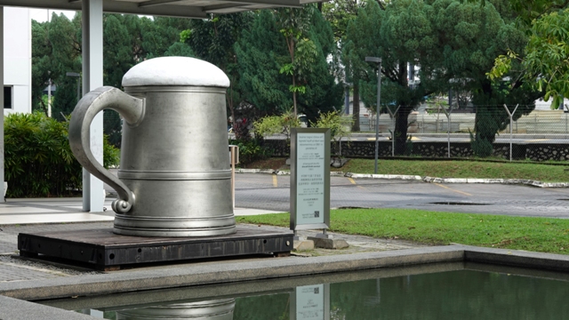 En la entrada de la fábrica tenían la jarra de cerveza más grande de mundo, incluida en el libro Guinness.