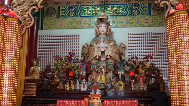 El templo se ubica en la calle Pitt Street, fue construido en 1728 en honor a la diosa Mazu, diosa del mar, siendo el templo taoísta más antiguo de Penang, fue renovado en el 1800 momento en el que se cambió a para dedicarlo a la diosa Guan Yin, Diosa de la Misericordia.