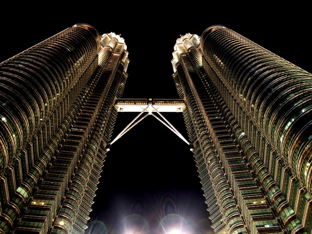 Las torres Petronas, diseñadas por el arquitecto argentino nacionalizado estadounidense César Pelli , con sus 452 metros de altura divididos en 88 pisos, fueron los edificios más altos del mundo hasta el año 2003, que fueron superadas por el edificio Taipei 101 de Taiwán. La construcción se inició en 1992 y fueron inauguradas en el año 1999. En ellas se rodó la película La Trampa (Entrapment ) con Sean Connery y Catherine Zeta Jones.