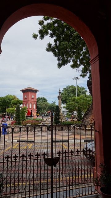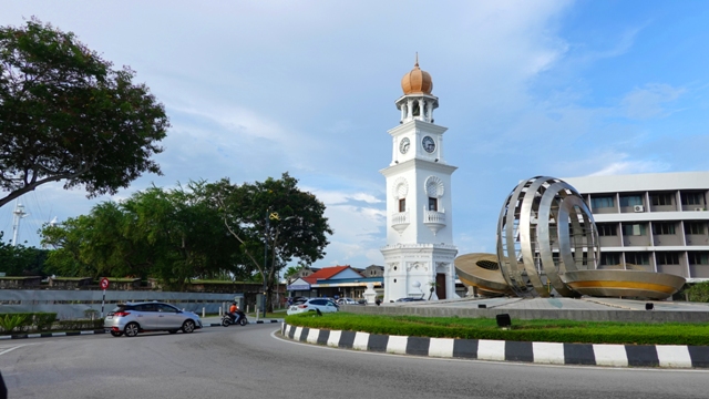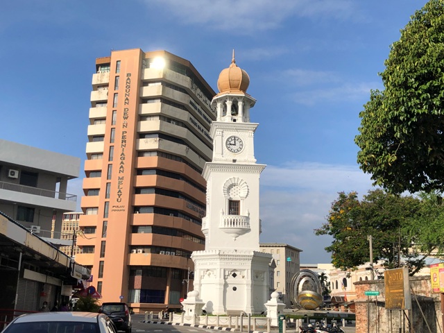 En un lateral del fuerte, donde se unen las calles Lebuh Light y Lebuh Pantai nos encontramos con esta torre del reloj en honor al jubileo de diamantes de la Reina Victoria en 1897, tiene sesenta pies de altura, un pie por cada año de reinado, si os fijáis en las fotografías está un poco inclinada a consecuencia de los bombardeos japoneses durante la Segunda Guerra Mundial. fue construida en estilo morisco.
