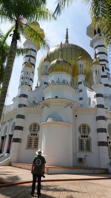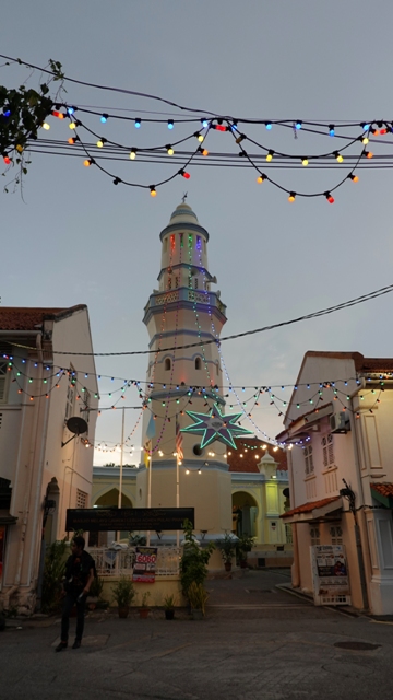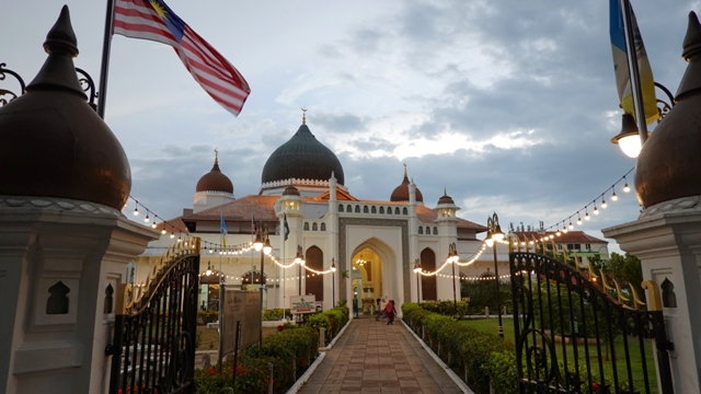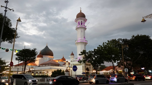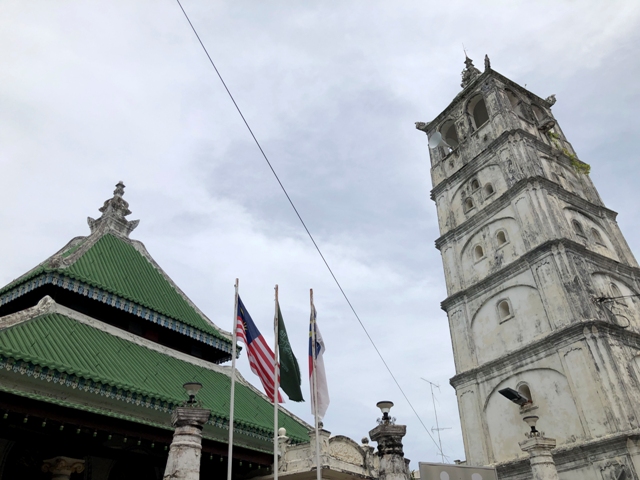 Casi frente al templo Sri Mahamariamman nos encontramos con la mezquita Kapitan Keling construida en el siglo XIX por el líder de los comerciantes musulmanes de origen indio Cauder Mohudeen, el cual fue nombrado por el vicegobernador de Penang, capitán de la comunidad “Keling” del sur de la India, al cual le cedió un terreno para construir una mezquita, sobre los terrenos de una antigua mezquita original que databa del siglo XVIII.