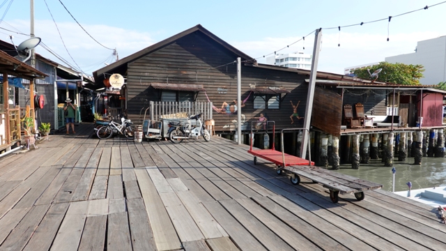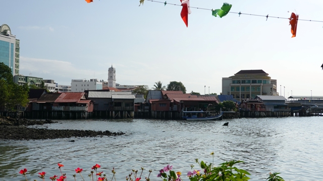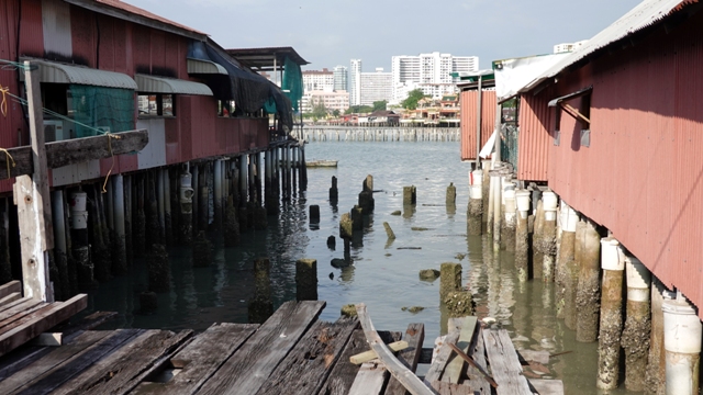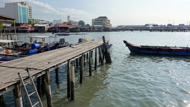 Volvimos a visitar, esta vez con sol, las casas de madera sobre el mar del clan Jetty, como eran justo las nueve de la mañana, que es cuando permiten visitarlas, todavía no había ningún turista, lo que nos permitió hacer las fotografías y el vídeo con más tranquilidad ni interferencias.