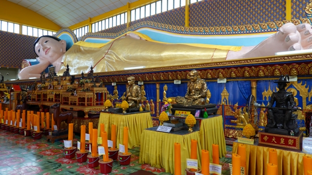 Este día teníamos previsto visitar varios templos, empezando por el Templo Siamés Wat Chayamangkalaram el más antiguo de Malasia, con su Buda Reclinado llamado Phra Chaiya Mongkol , con sus 32 metros de longitud es el más grande de Malasia, fue creado en 1958 gracias a la financiación mayoritaria por una familia tailandesa, el templo está situado en el barrio de Pulau Tikus,