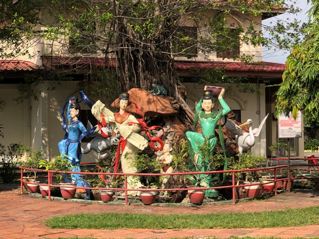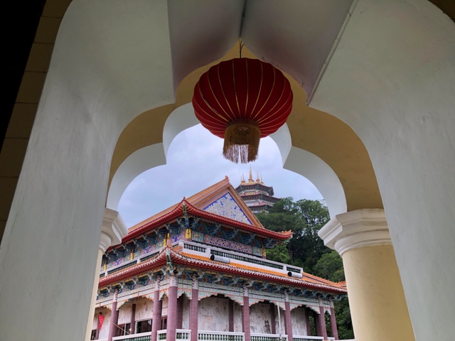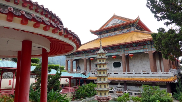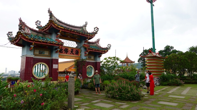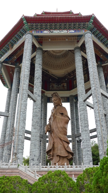 Nos desplazamos hacia la colina cerca de la ciudad para visitar el templo Kek Lok Si, un enorme conjunto con varios templos budistas, nos dijeron que es el más grande de Malasia, donde destaca la gigantesca figura de la diosa Guan Yin, la Diosa de la Misericordia. Este templo es un importante centro de peregrinación para los budistas de países cercanos como Hong Kong, Filipinas o Singapur.
