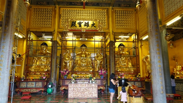 Entramos al templo por la zona más baja, para poder ir recorriendo todos sus recovecos tal y como íbamos subiendo sus diferente niveles, en los primeros niveles nos encontramos con preciosos jardines repletos de budas hasta que una vez en la zona intermedia empezamos a encontrarnos los primeros templos, destacando el templo de los Reyes Celestiales .