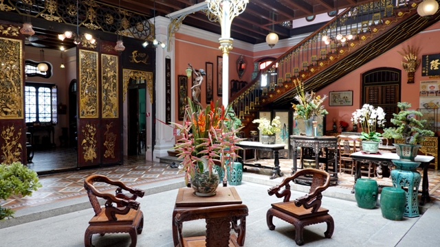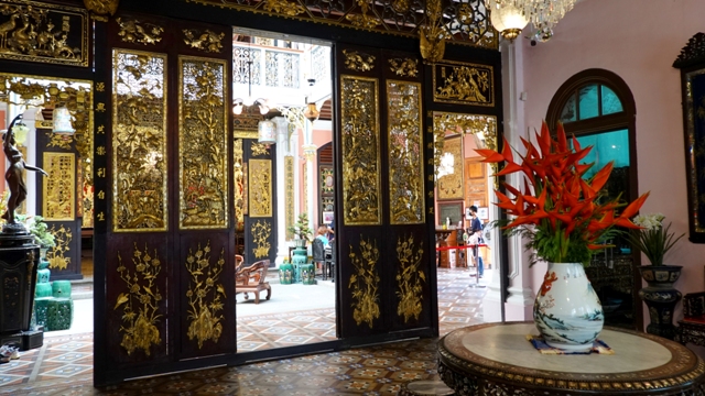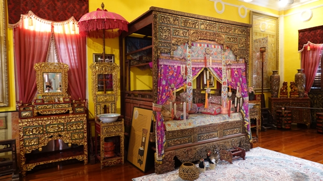 Como podéis ver en las fotografías, la Mansión Pinang Peranakan es realmente impresionante, una auténtica maravilla, con todo su lujoso mobiliario, celosías y enseres, durante la visita pudimos ver una gran cantidad de habitaciones donde sus amplios expositores nos mostraron las delicadas vajillas y cristalerías que usaban sus moradores, con magnificas antigüedades por doquier.
