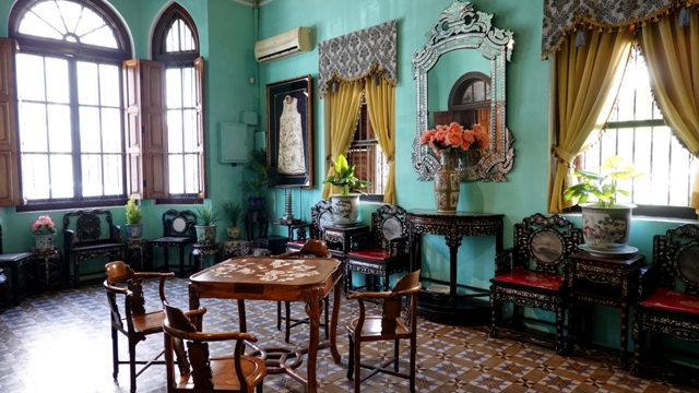 Tras la comida , pensamos seria un buen momento para visitar la Mansión Pinang Peranakan también conocida como The Green Mansion, pues hacia mucho calor y así estaríamos más fresquitos a cubierto, la mansión fue declarada patrimonio de la humanidad por la UNESCO. Se encuentra en la calle Church Street, 29.