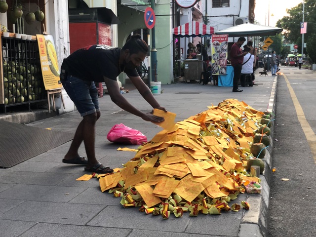 Salimos a media tarde para recorrer otra vez las calles de George Town, empezando por Litle India, pasando frente al templo Kuan Yin Teng en China Town.
