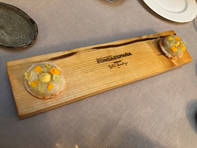 - Aperitivos : Sardina y escalibada Tuétano, solomillo y anchoa Calamar, holandesa y tomillo, Champiñón y Idiazábal trufado