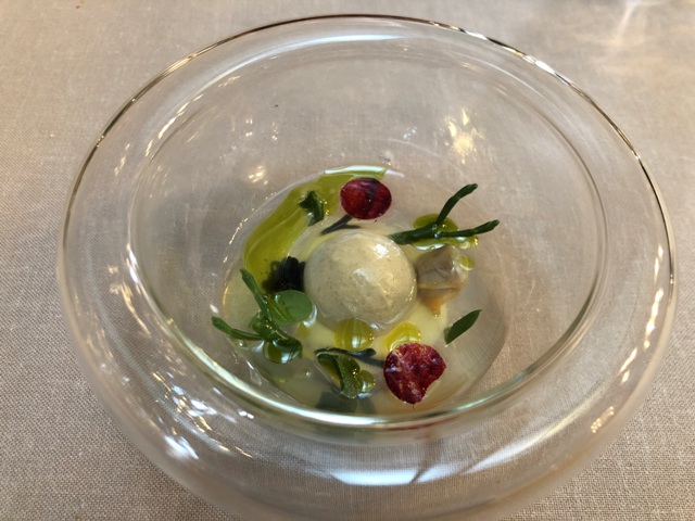 - Entrantes : Ensalada de moluscos, pil-pil de berberecho, maracuyá y hierbas frescas Caballa soasada, crema de almendra y uvas Arroz de pulpo con sepia y ajada